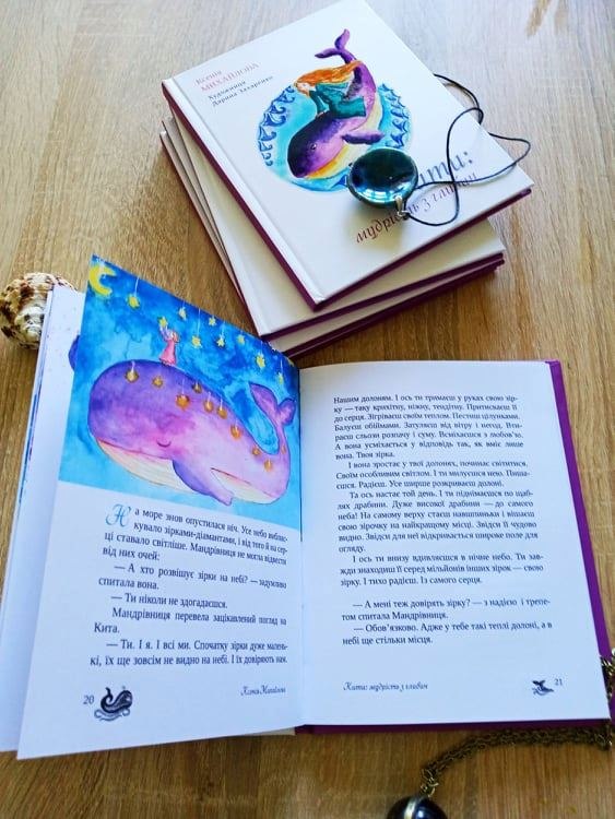 «КИТИ: МУДРІСТЬ З ГЛИБИН» - це 20 метафоричних історій про Мандрівницю і її пошук сенсу життя. Вона не боїться йти за мрією і віднаходить Кита. І питає, питає, питає, адже її палаюча й натхненна Душа весь час шукає відповіді на важливі питання. І ось нарешті знаходить. Мандрівниця питає з самого серця. З самих глибин. А Кит відповідає. Відповідає глибоко і мудро. Із самого серця. Зі своїх глибин. Здається, що його устами промовляє Душа. Вічна і мудра. Мальовані акварельні кити ще глибше занурюють в історії і дозволяють кожному побачите своє, важливе.